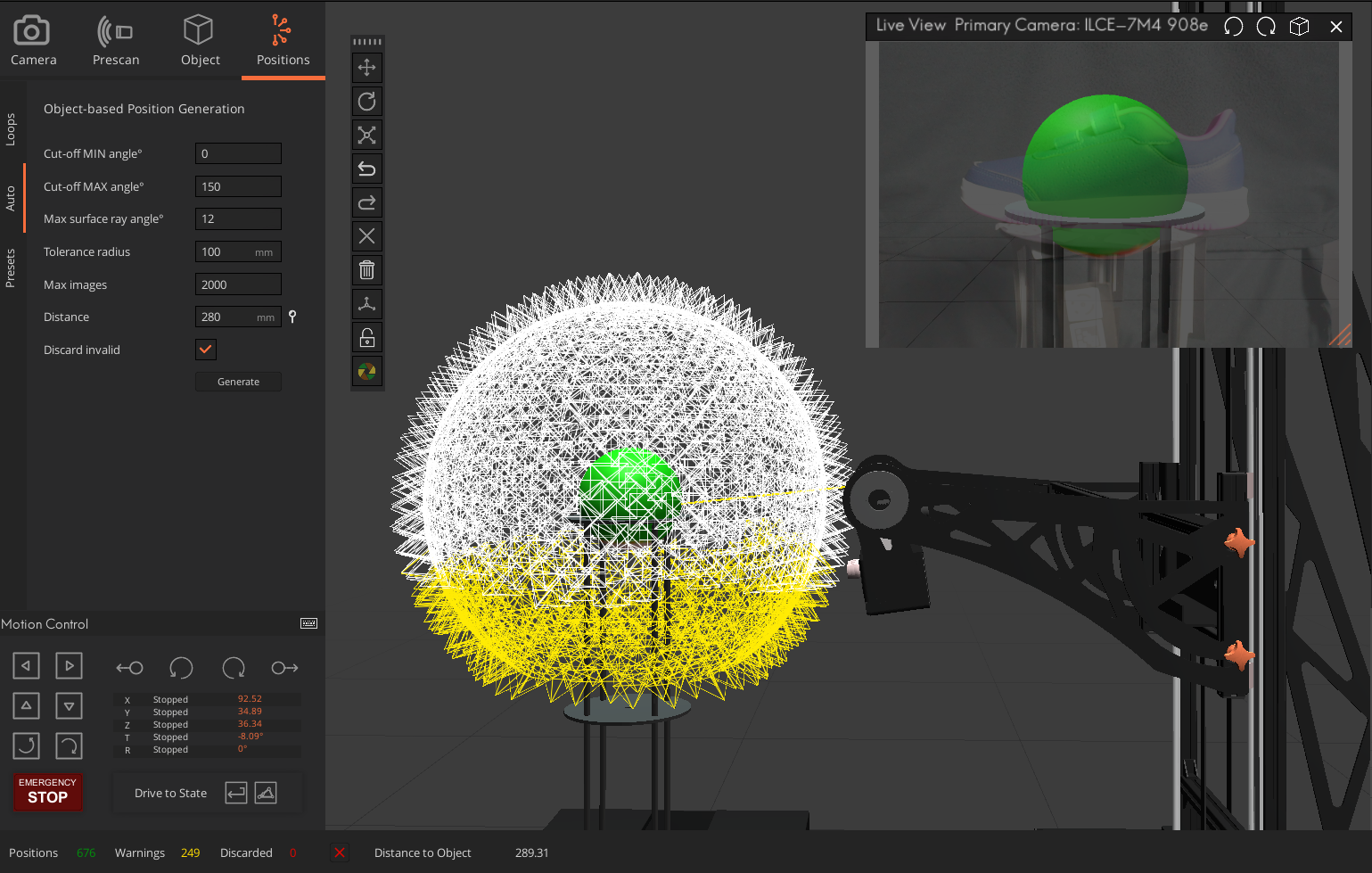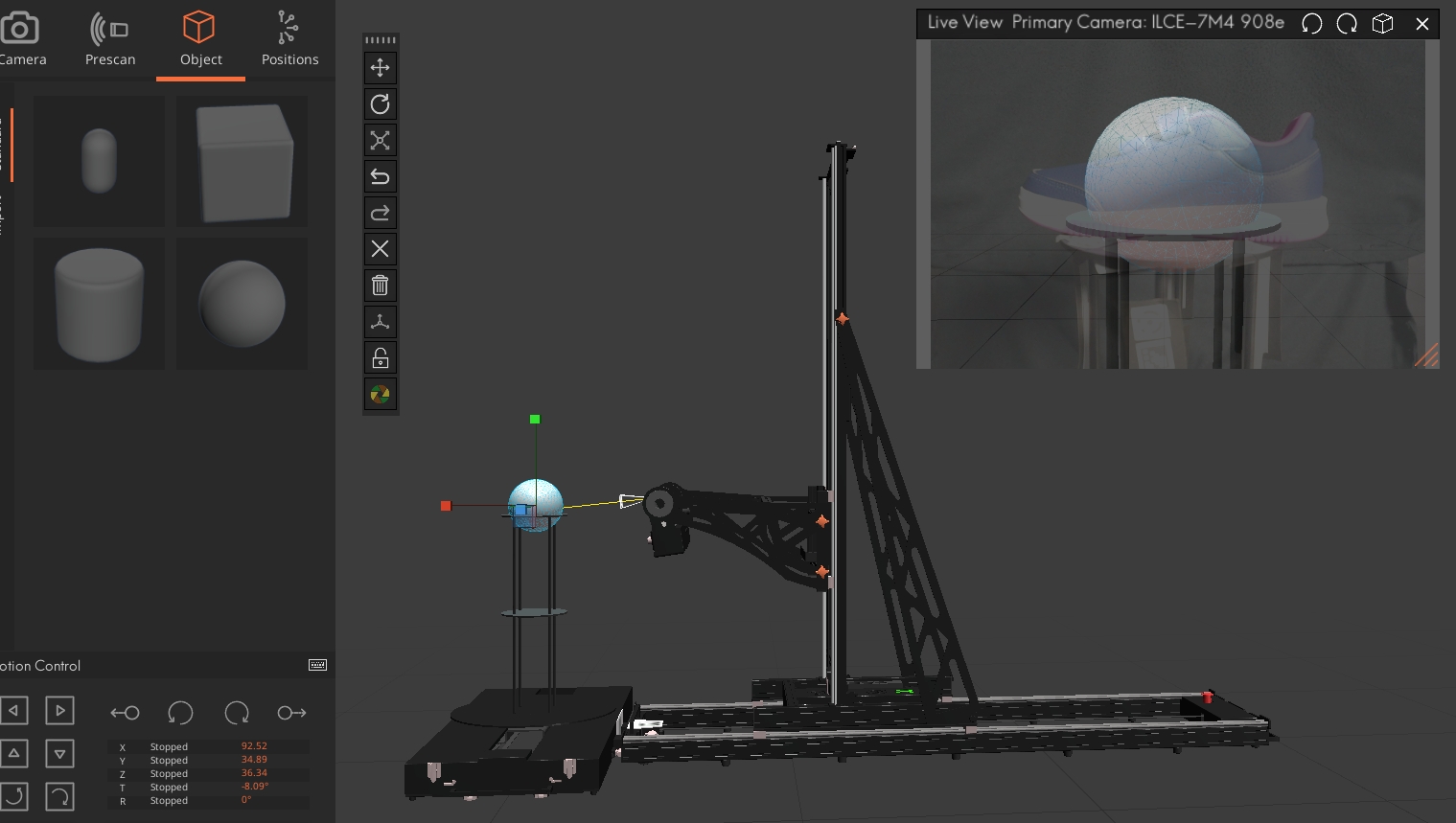 Create a sphere around your subject so it generally encloses the subject. If the sphere is too large, the Arago may struggle to keep it in frame; if it’s too small, parts of the object may be cropped.