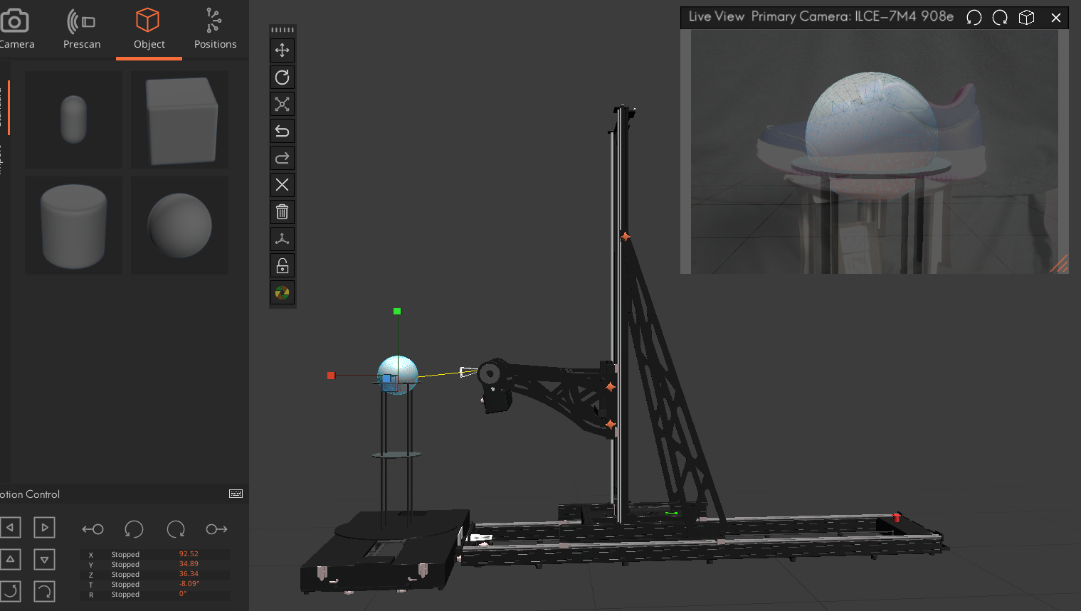 Ensure the object fits well within the frame - it shouldn’t appear too small, but it also shouldn’t be cropped. To achieve good framing, use the live view mode on the Arago to look through the camera, and rotate the pedestal to position the object correctly.