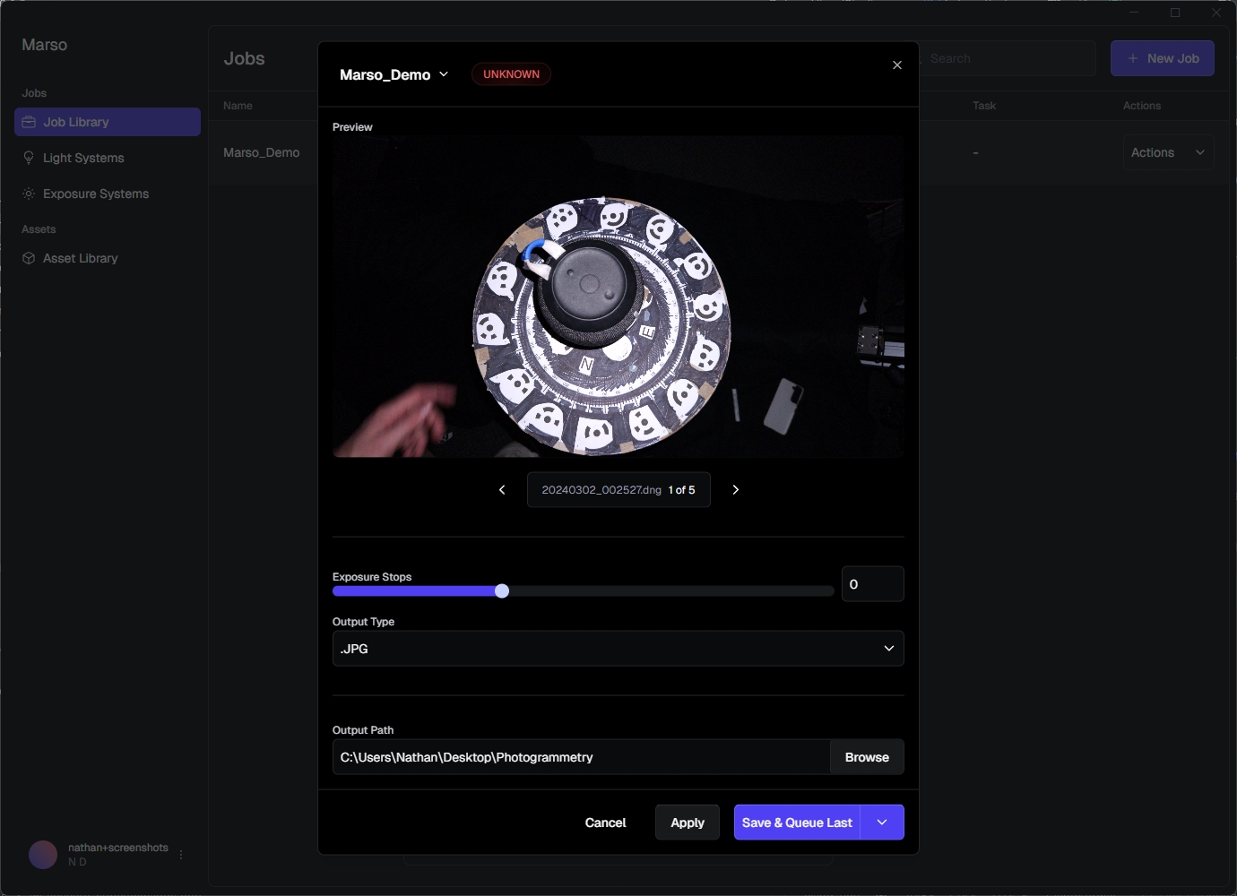 In Marso Measure a Job is used to track the status of a particular subject from capture to textures. Once your capture is complete, and you have a folder of RAW photography you are ready to process with Marso Measure.