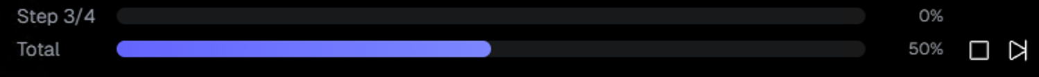 A running job can be interrupted with either the stop or skip button. Both will lose any progress up to this point.