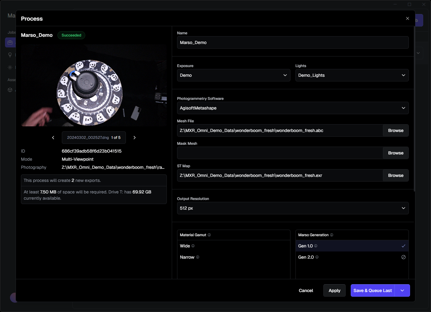 Once you have produced an Alembic, ST Map(s), and optional Mask Mesh, you are ready to process the Job to produce your textures.