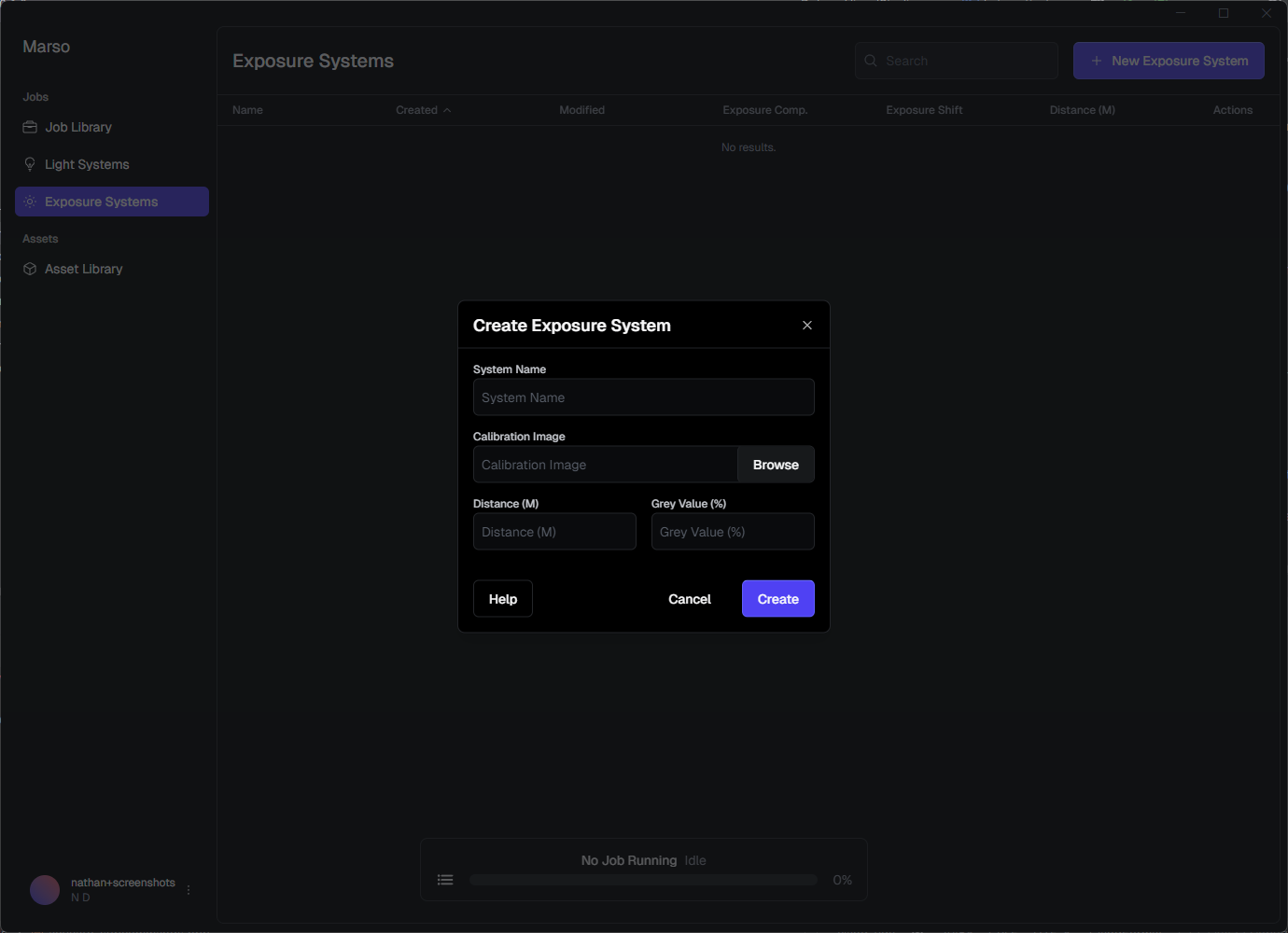 Fill in the information in the Create Exposure System area, give it a meaningful system name, include your calibration image, the distance from the flash to grey card and grey value.