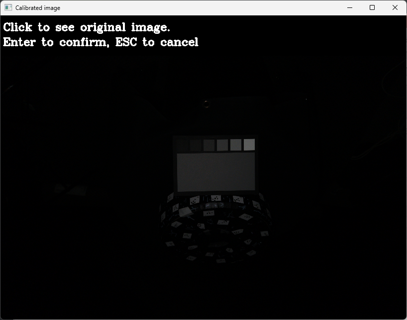 The calibration tool will then run in the background. This may take up to 10 minutes depending on your system and the resolution of your input images. When it is complete the adjusted image will be shown for confirmation. It should appear balanced, and slightly under-exposed.